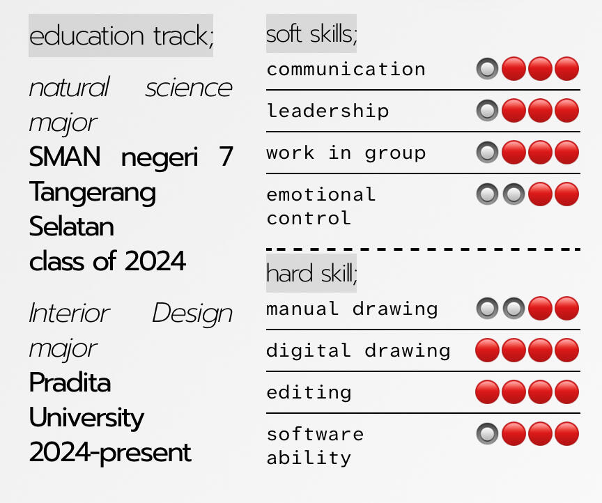 a first-year Interior Design student @Pradita University with a deep interest in spatial storytelling, concept development, and visual composition.